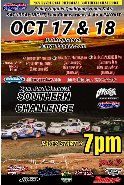 WHITTEN INN +1 (325) 695-7700 IS OUR SUGGESTED HOTEL CALL FOR RACERS SOUTHERN CHALLENGE RATE!!